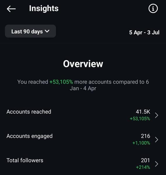 As of April - July, the followers in the account has reach up to 214% with a 41.5k accounts reached.